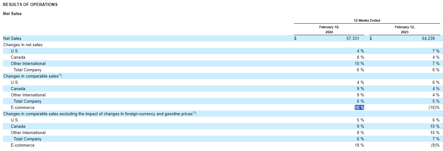 Costco has also put a big focus on their e-commerce. This quarter, theyâve seen an 18% increase in e-commerce sales. As Costco continues to improve their process with e-commerce, they will certaintly see more benefits from this addition. E-commerce purchases are catered to home renovations, jewelry, and consumer electronics. An increase in e-commerce indicates consumers have more discrentionary income they are willing to spend. This can potentially mean more splurging as the year progresses.
