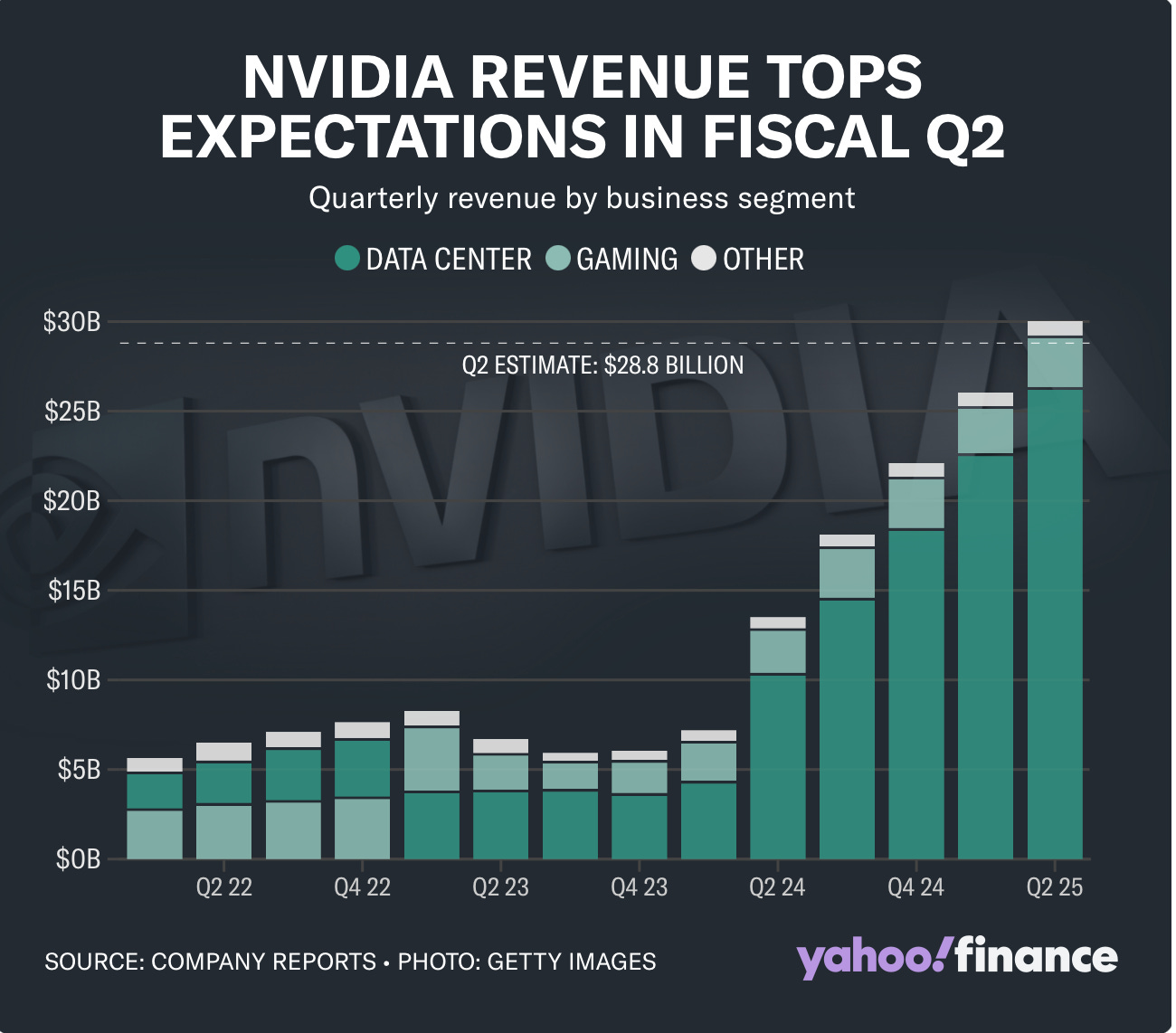 The company also announced a $50B share buyback program. Moreover, Nvidia guided revenue up for Q3 to $32.5B vs the expected $31.9B. For perspective, the company generated $30 billion dollars in one quarter. If you assume linear growth, that’s $10 billion per month and $2.5 billion per week.