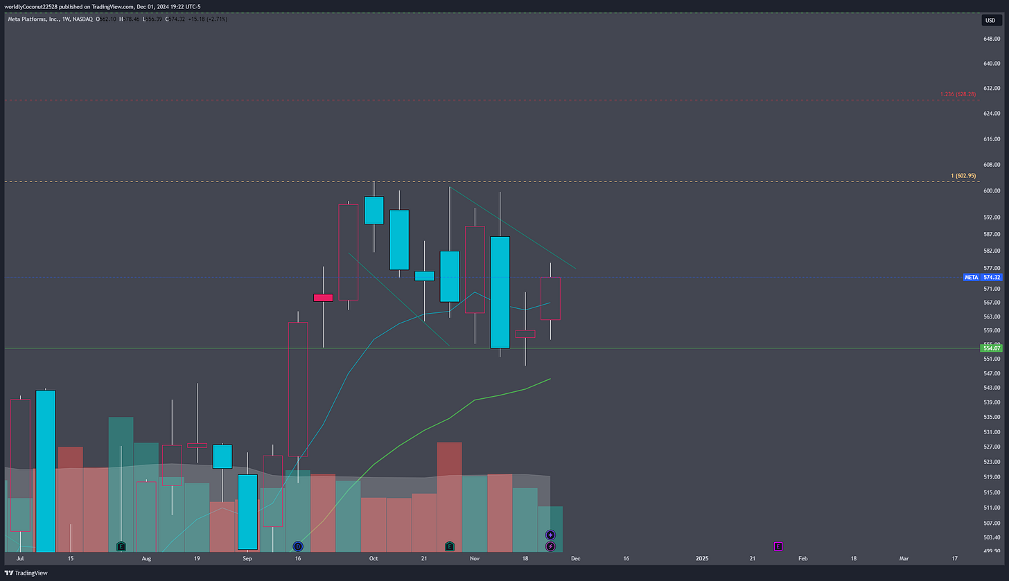 Great weekly close holding support at $554, looking for a consolidation range break to target $628.