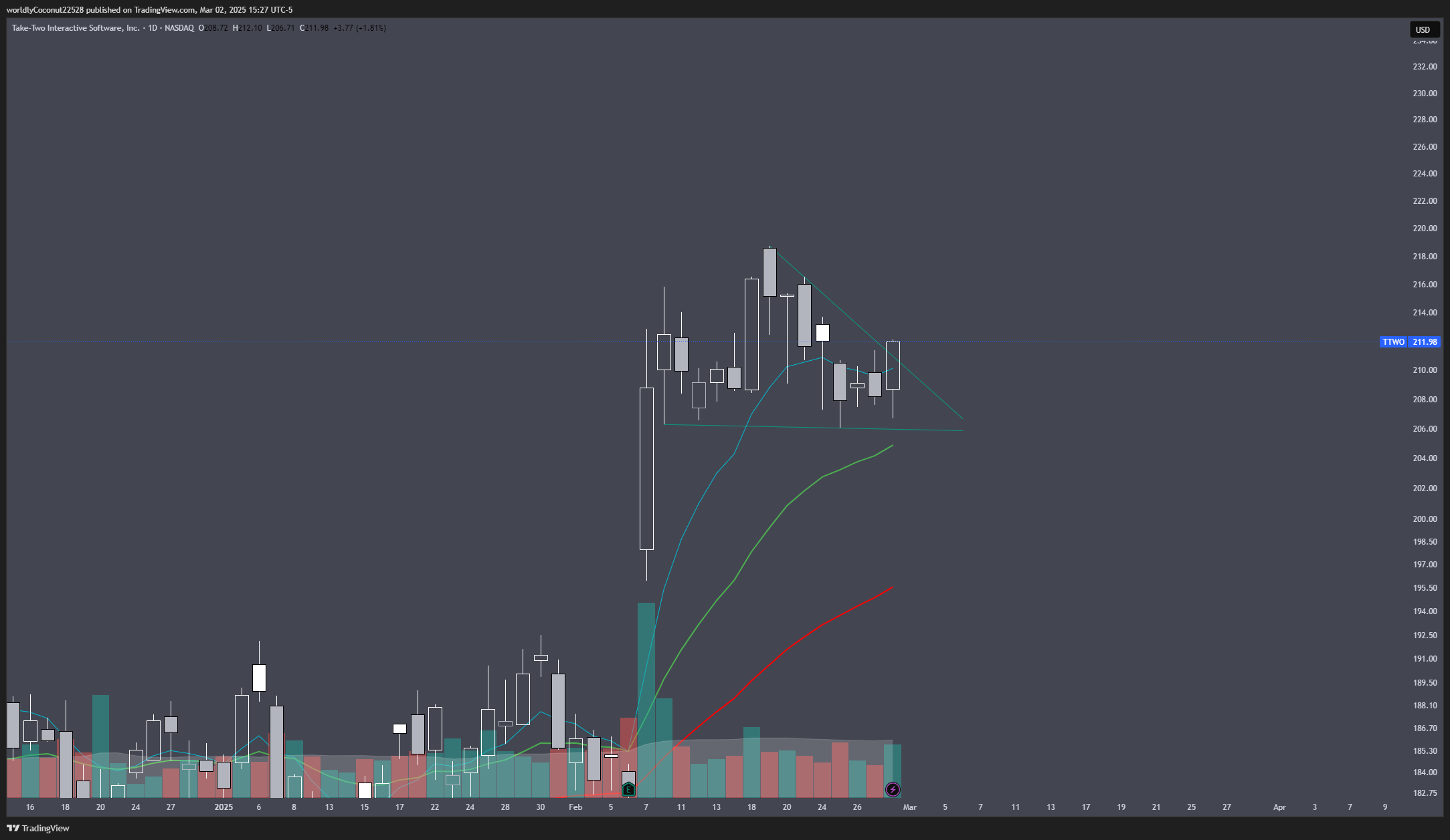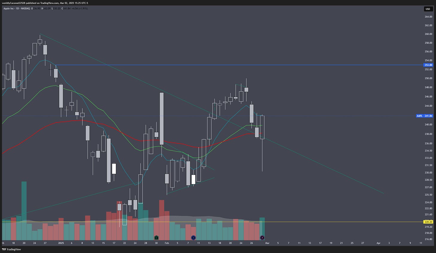 Apple’s resilience during the last two weeks of February needs to be studied, as the stock price literally went against the rest of the market for the majority of the time. To me, this looks like a nice retest of the trendline break out. I would love to see a reclaim of the 8 day EMA to then test $250+.