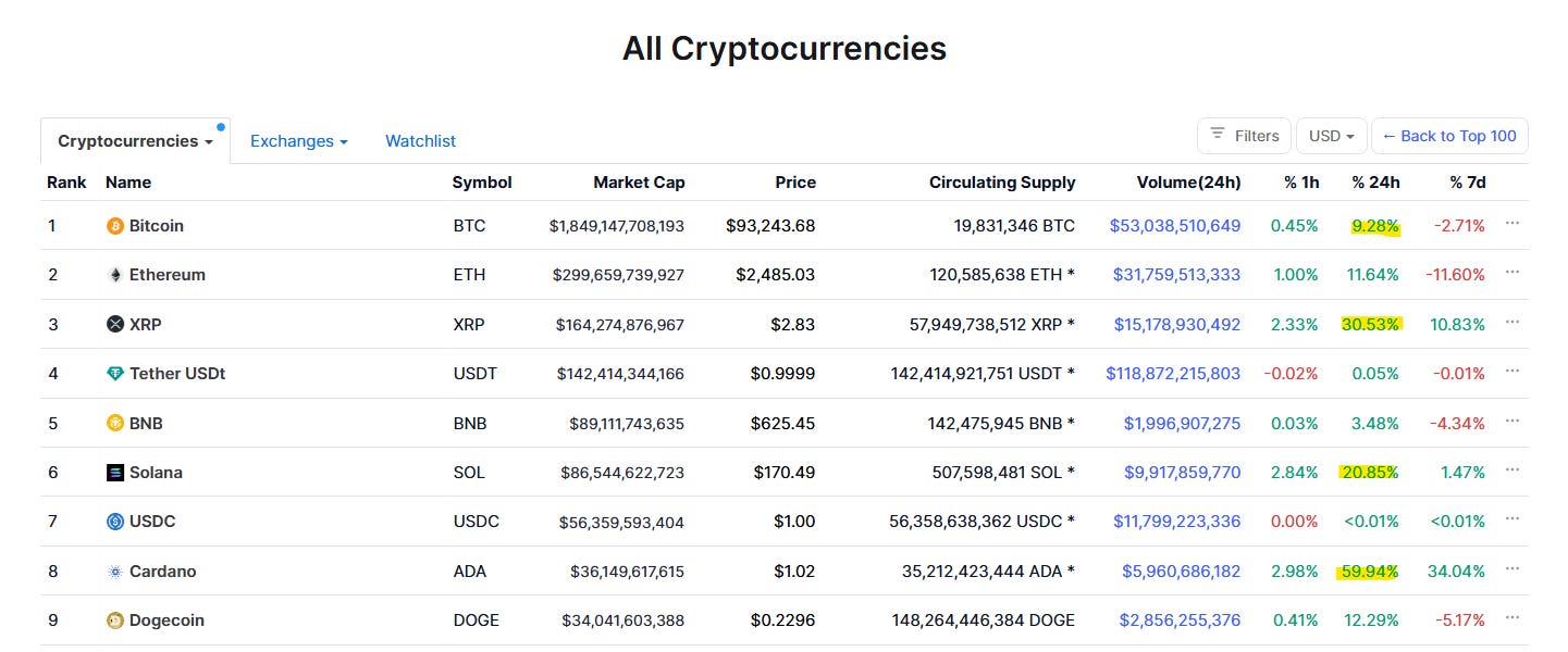 President Trump also just announced this morning the creation of a “strategic crypto reserve” that will include BTC, ETH, SOL, and ADA. To no surprise, the cryptocurrencies mentioned experienced a healthy boost in price with ADA going up almost 60%.