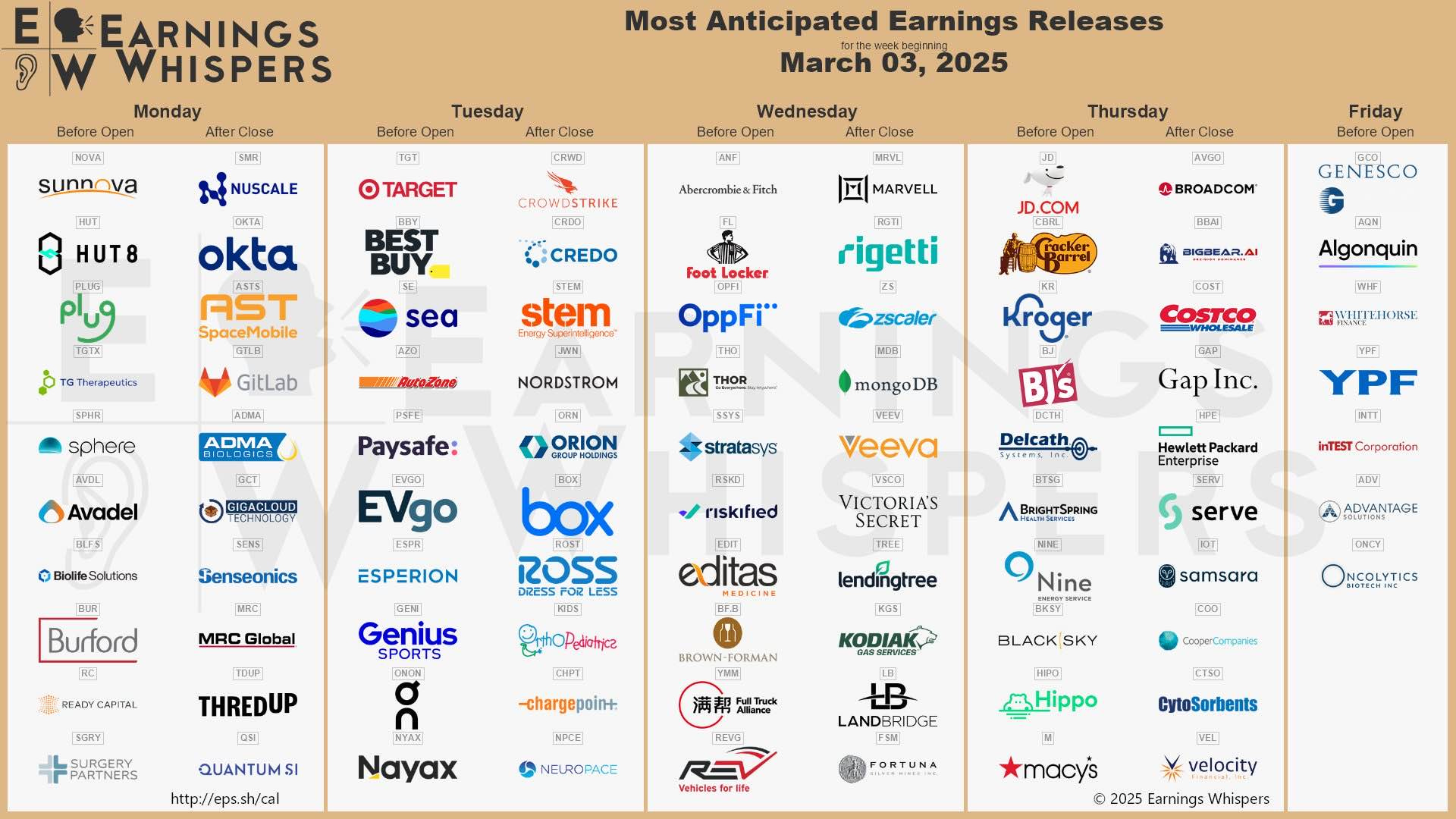 The earnings I am watching closely are: TGT 0.00%↑. KR 0.00%↑, & COST 0.00%↑. The performance and guidance from these two companies can provide insight on how consumers are projected to spend their money.