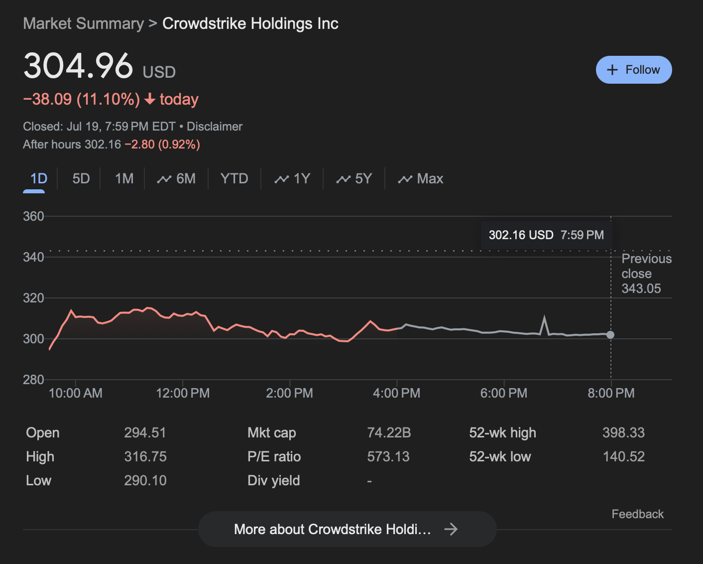 As a result, CRWD 0.00%↑ stock closed down 11% on the day. Personally, I tried to buy shares and leap option contracts on Crowdstrike but my broker Charles Schwab was down because of the security update. Fundamentally, the company has not changed and will recuperate this loss in their stock price. I will be looking to add this upcoming week.