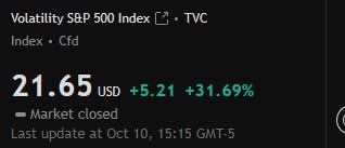 The VIX, volatility index, is commonly known as the fear gauge and spikes when there is uncertainty in the world. This is usually inversely correlated with the market, which is why we saw a 31% spike on Friday as the rest of the market pulled back.